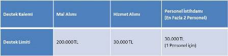 belirlenecek diğer mal ve hizmet alımlarına, destek verilir. Destek Miktarı Kooperatiflerin sunacakları proje başvurularında hibeye esas proje tutarı azami sınırları aşağıdaki gibidir